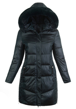 Zimowa Parka Czarna z Czarnym Futerkiem B532