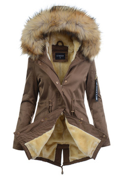 Zimowa Parka Brązowa z Szarym Futerkiem