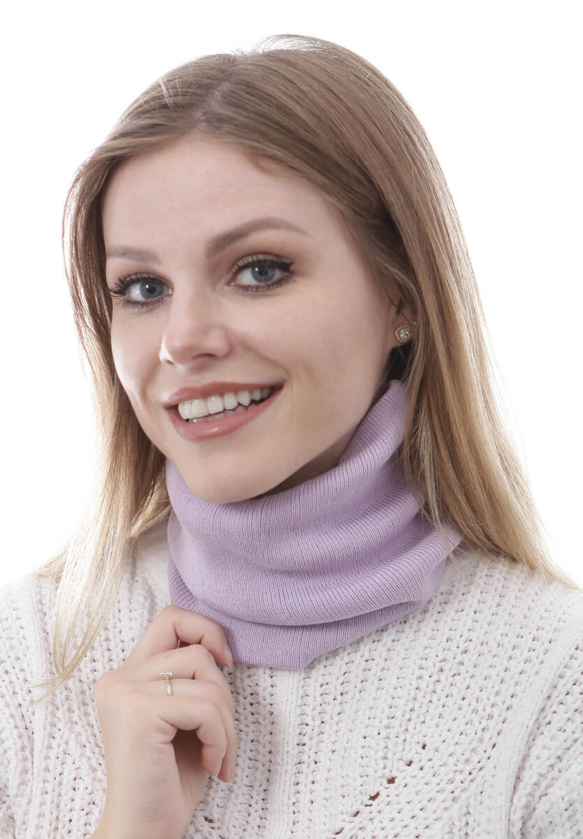 - Damski podwójny komin typu golf w kolorze fioletowym.
