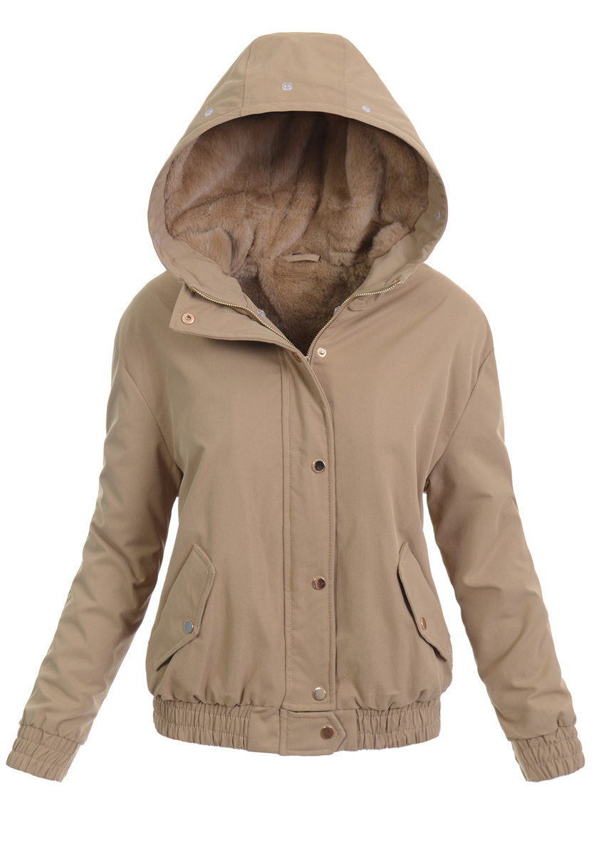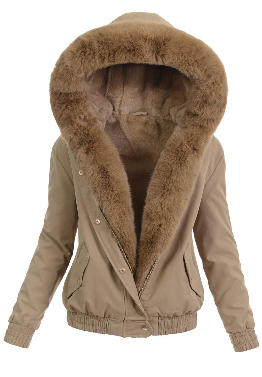 - Wzdłuż suwaka i kaptura znajduje się odpinane futerko.