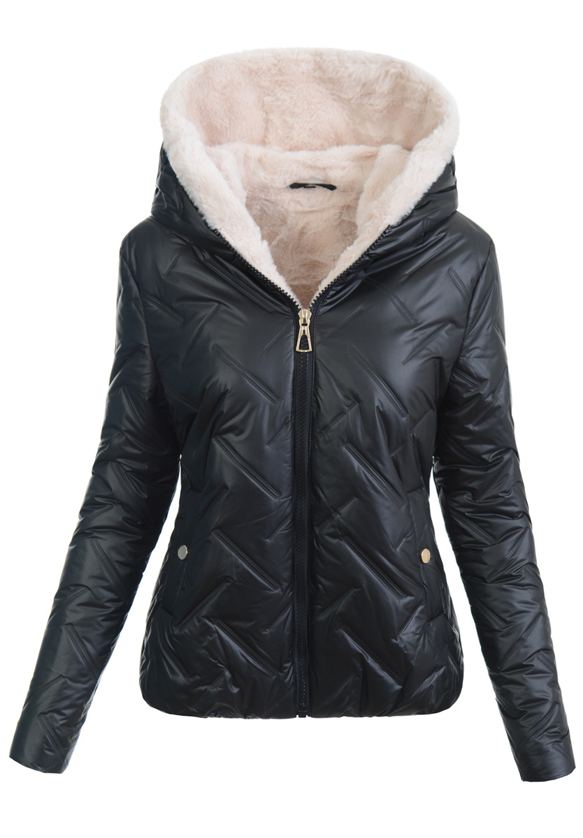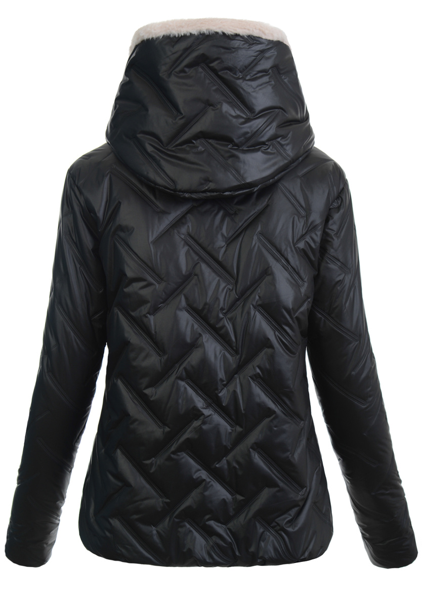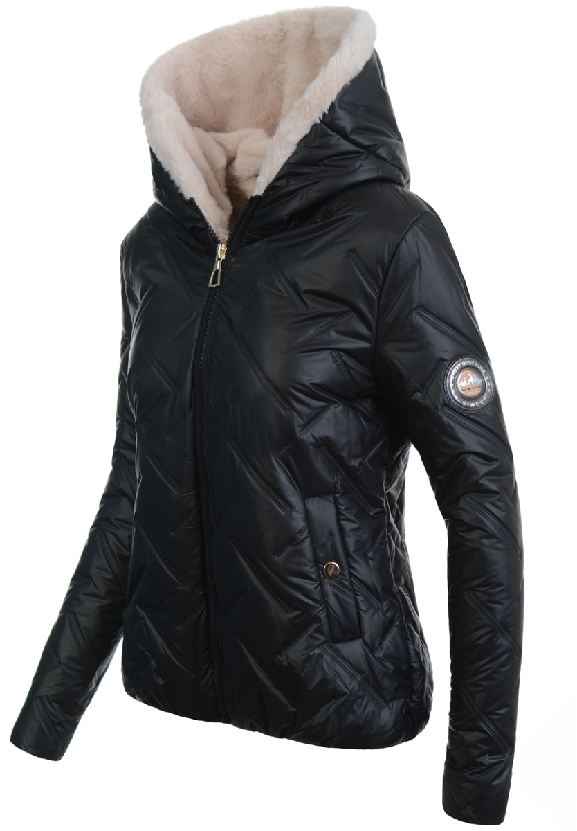 Damska Kurtka Zimowa Czarna z Beżowym Futerkiem