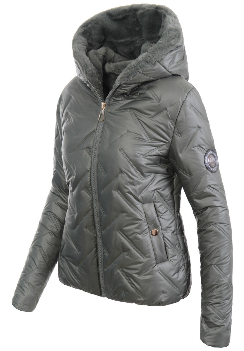 Damska Kurtka Zimowa Zielona z Zielonym Futerkiem