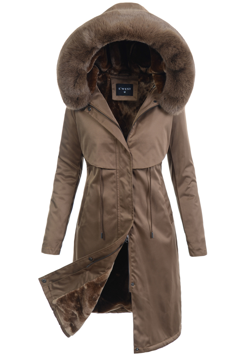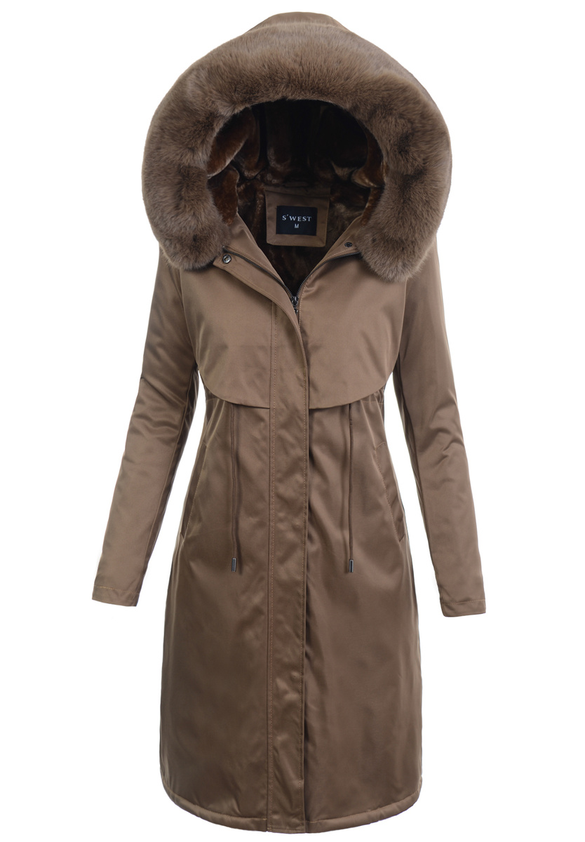 Damska Parka Kurtka Zimowa Brązowa