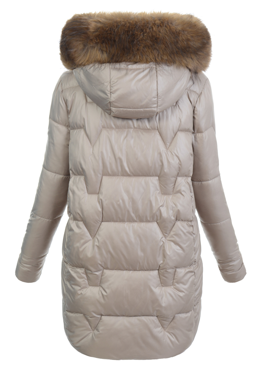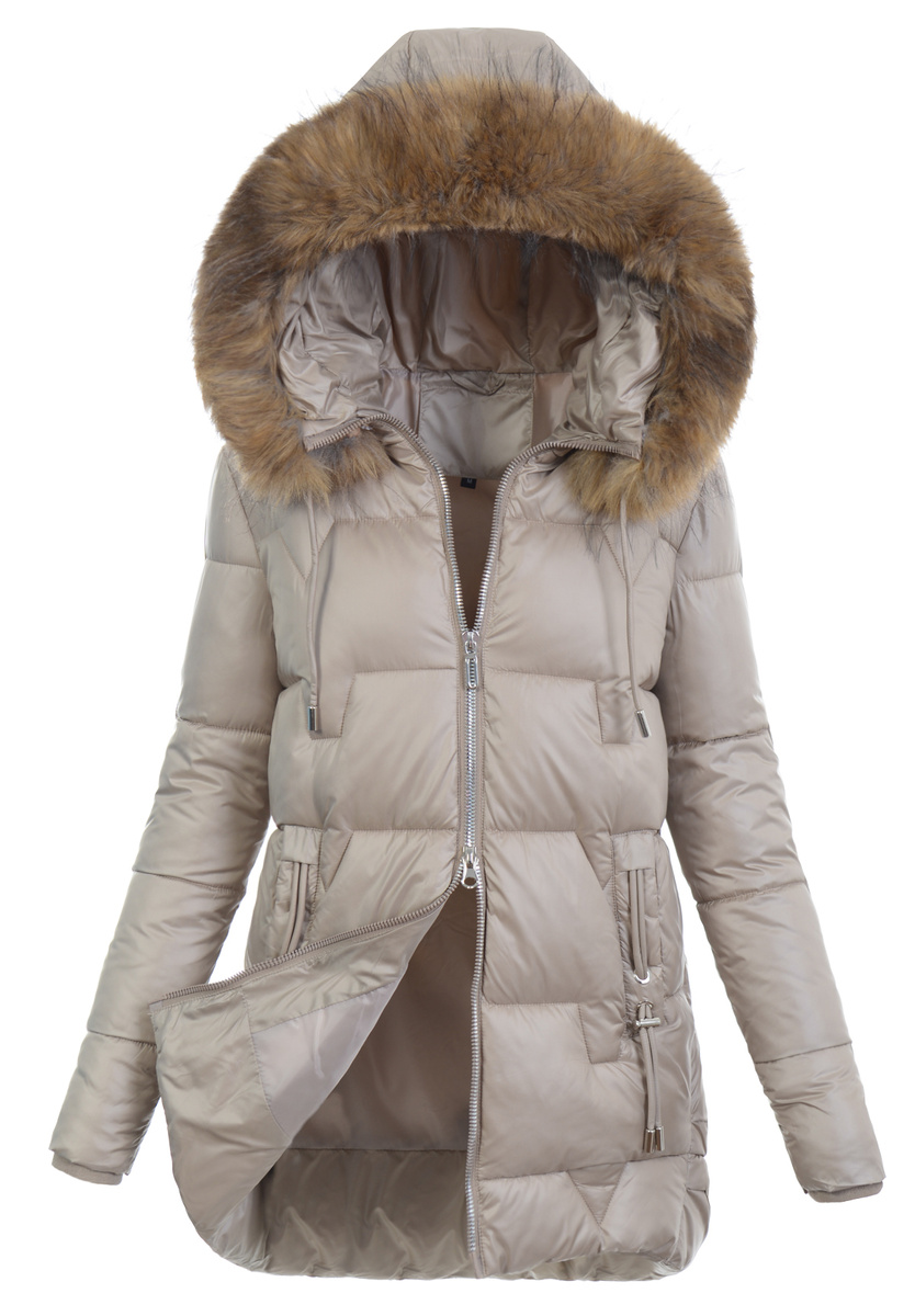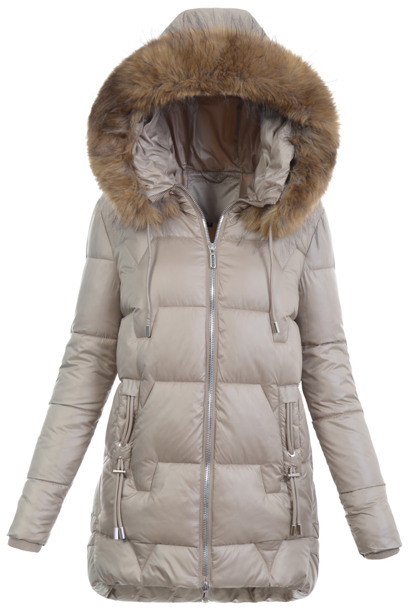 - Nieodpinany kaptur ze ściągaczem i z odpinanym futerkiem,