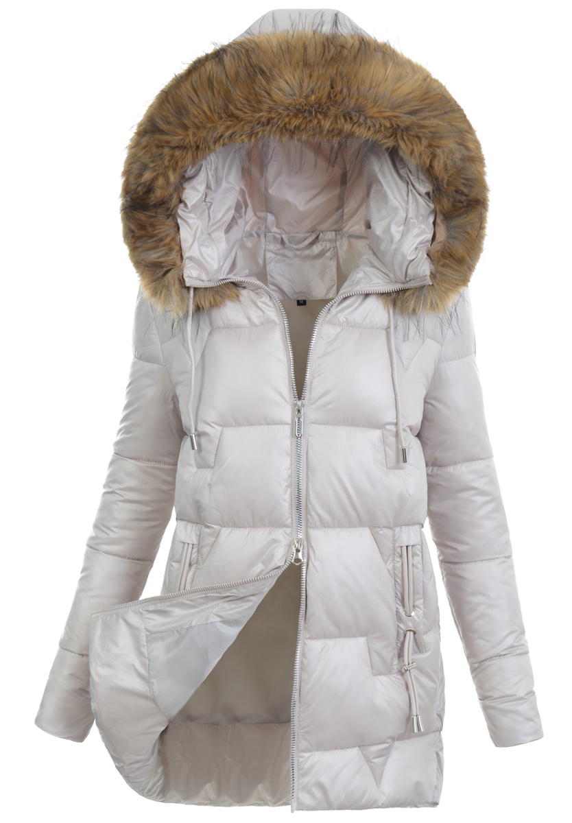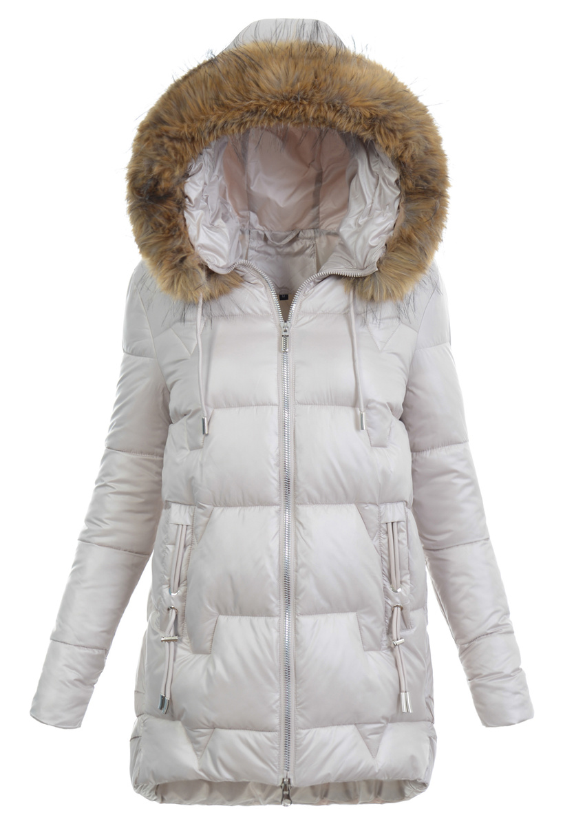 • Nieodpinany kaptur ze ściągaczem i z odpinanym futerkiem,