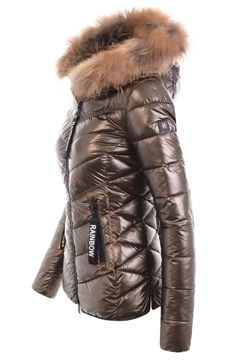 - Nieodpinany kaptur ze ściągaczem i z odpinanym naturalnym futerkiem.