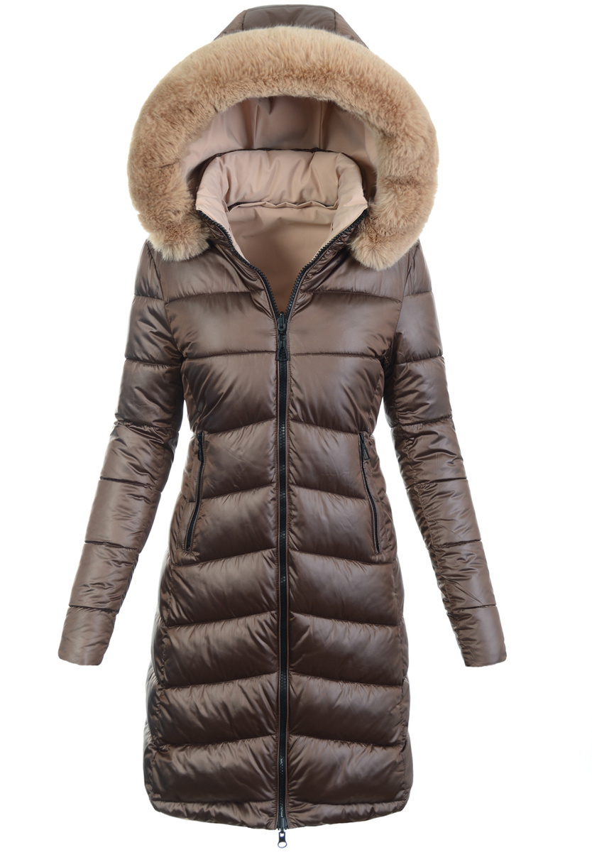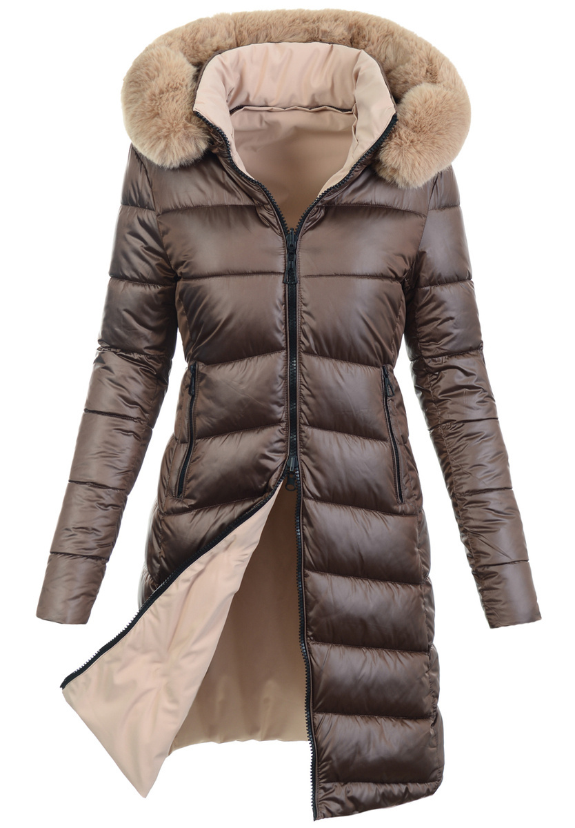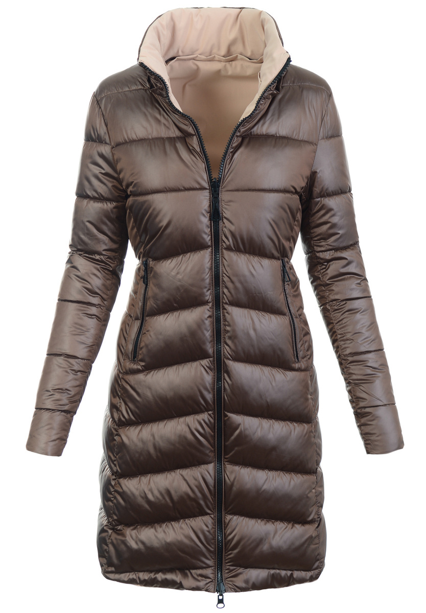 Damska Zimowa Ortalionowa Kurtka Brązowa