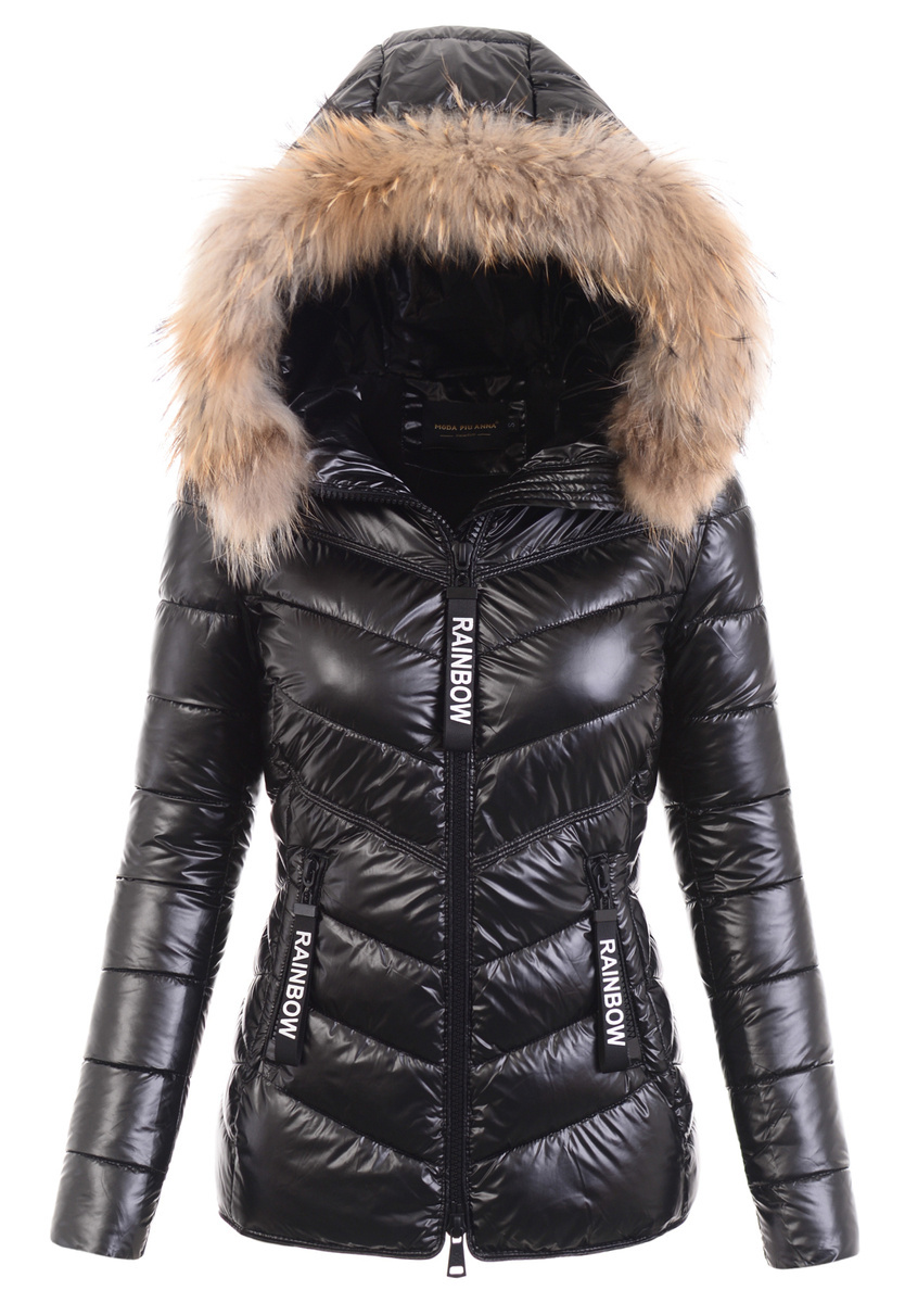 - Nieodpinany kaptur ze ściągaczem i z odpinanym naturalnym futerkiem.