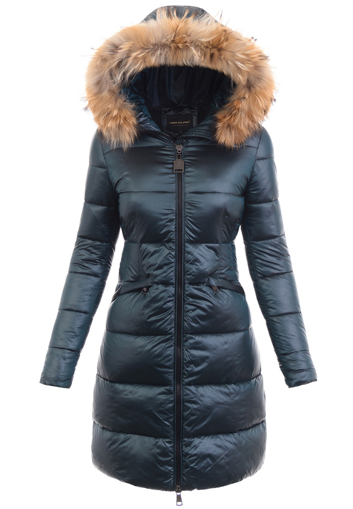 - Nieodpinany kaptur ze ściągaczem i z odpinanym naturalnym futerkiem.