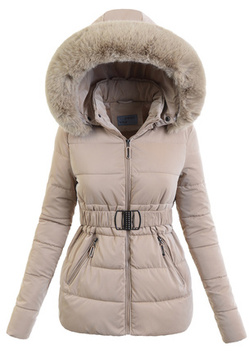 Damska Zimowa Ortalionowa Kurtka Beżowa