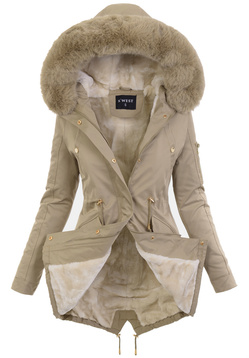 Damska Parka Kurtka 2w1 Zimowa Beżowa