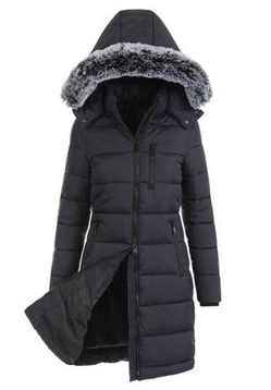 Damska Kurtka Zimowa Czarna z Czarnym Futerkiem